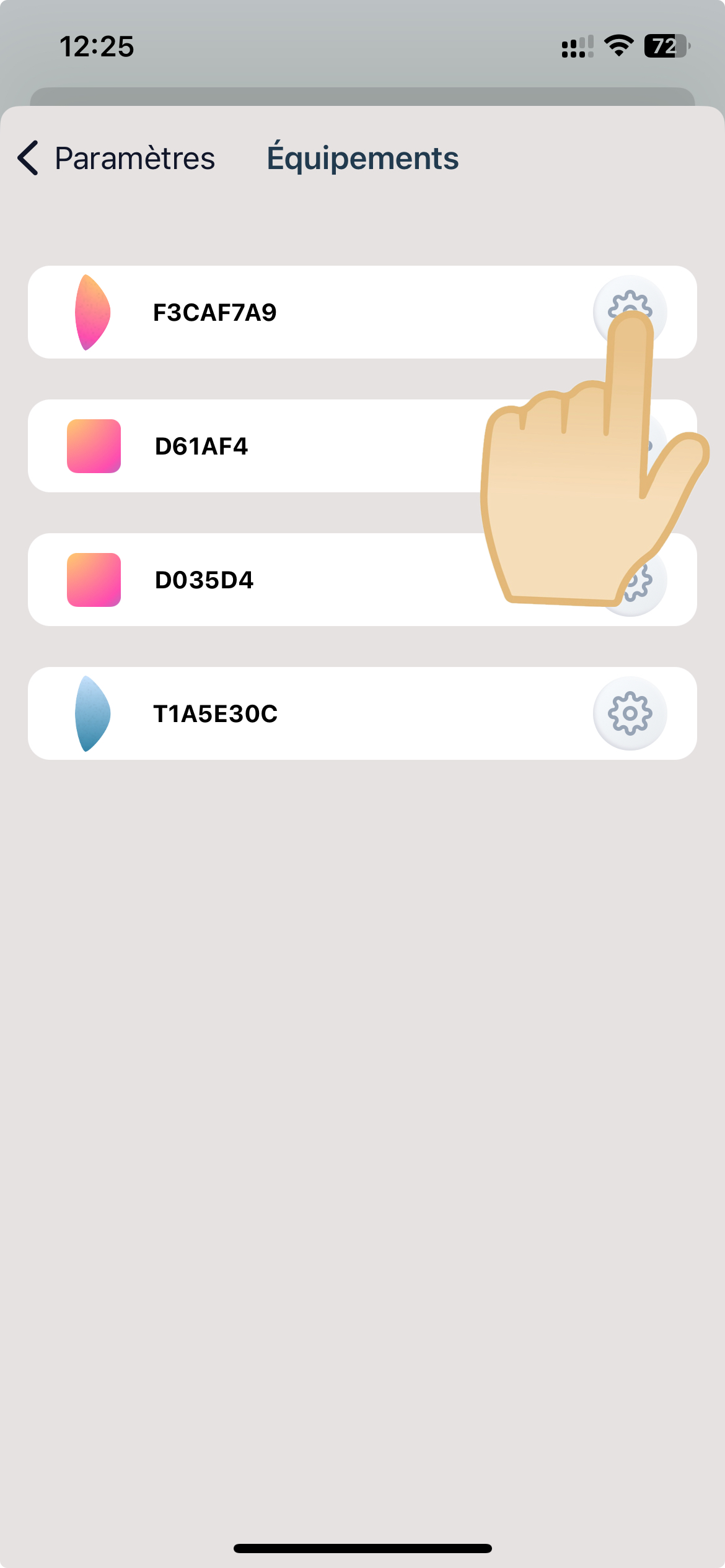 2. Accéder aux paramètres : Allez dans le menu des paramètres / Equipements