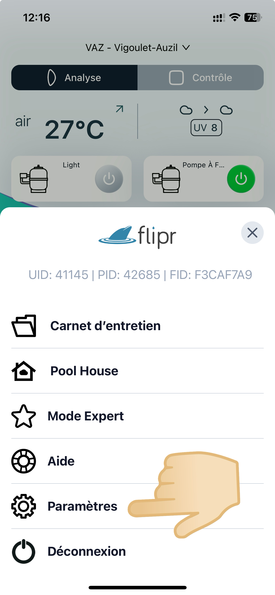 Alternativement et si le flipr est visible sur le tableau de bord, vous pouvez accéder directement aux paramètres du flipr pour la suppréssion et finir l'étape 4..
