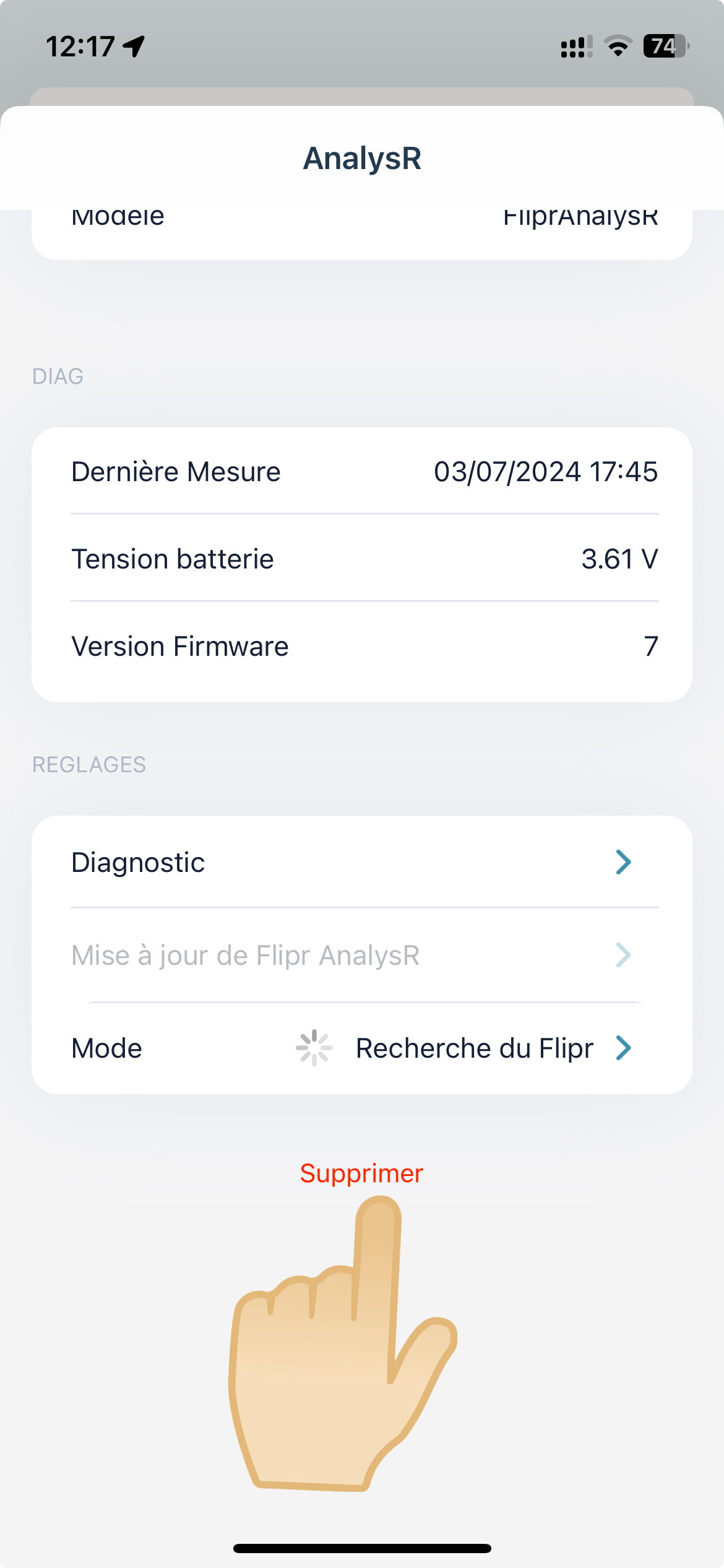 3. Sélectionner l'ancien Flipr : Dans la liste des appareils, choisissez l'ancien Flipr que vous souhaitez supprimer.